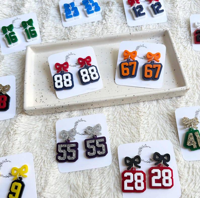 Custom Sports Number Earrings, Sports Mom Earrings, Jersey Number Earrings, Team Spirit